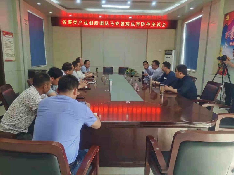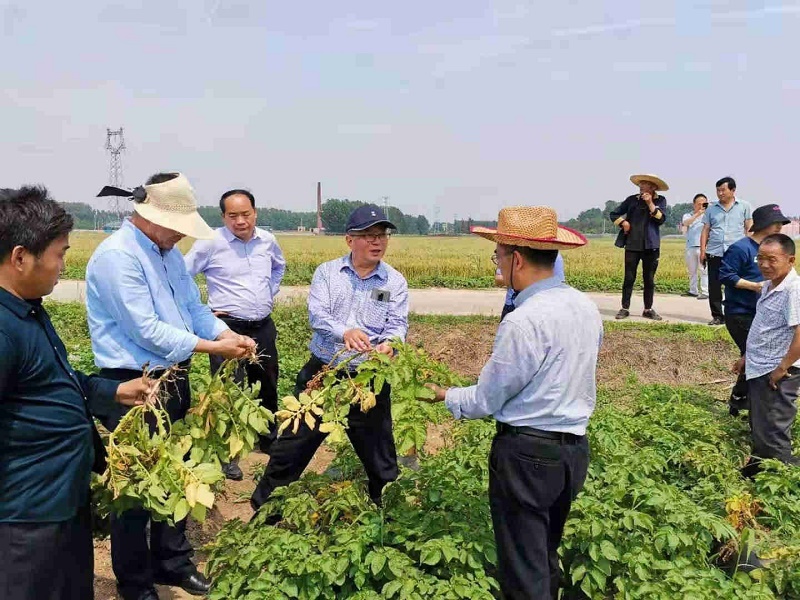 专家们重点调研了20多亩马铃薯典型发病地块,发现病害发生种类主要集中表现为马铃薯黄萎病、马铃薯黑胫病,还有零星发生的马铃薯黑痣病、马铃薯病毒病等土传、种传病害。专家们在种植现场对薯农就病害防控及下一步田间技术管理提出了指导建议。现场调研结束后,团队专家与微山县农业局及乡镇相关农业技术人员和部分薯农进行了座谈,并提出了今后马铃薯生产中病虫害综合防控的建议。并提出了今后马铃薯生产中病虫害综合防控的建议:1、相关部门和种植户要加强种薯质量检测、管理和种源情况的调查,避免种薯携带、传播病虫害。2、尽量选用正规种薯公司繁育的高级别种薯,在源头上减少病虫害的传播。3、加强轮作,可减轻马铃薯土传病害的发生。