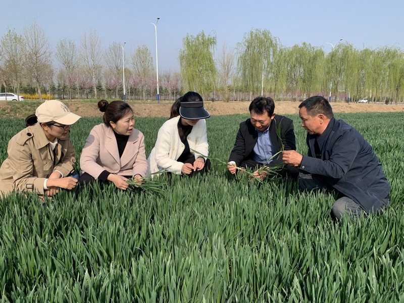 随后,调研团队又来到了兖州区新兖镇运国家庭农场的小麦繁种田,对麦田的长势进行了分析,并对主动防范“倒春寒”、中后期浇水、病虫害综合防治、后期出现极端灾害天气等管理提出了建议,并就小麦肥水一体化、种植模式等当前小麦生产中存在的突出问题进行了深入交流。