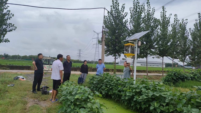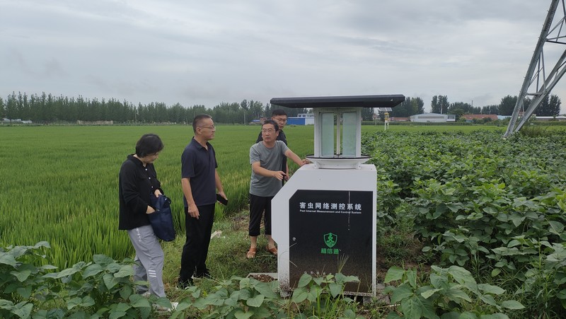 调研活动中,山东农业大学机电学院刘双喜教授结合基地水稻病虫害调查情况,强调在做好水、肥管理的同时,也要加强病虫害管理。刘教授分别介绍了山东水稻的主要病虫害,如稻瘟病、稻曲病、稻纵卷叶螟、稻螟蛉、稻飞虱等病虫害的危害症状、发生趋势和防治措施。围绕水稻病虫草害绿色防控等岗站合作进行深入交流研讨,并详细介绍了省水稻产业体系岗站合作引进的虫情监测防控智能一体机(XC-CP006)设备工作原理。虫情监测防控智能一体机可操作十台杀虫灯,采用宽光谱、多光源、多波段形式专用诱虫光源及智能高温灭活装置,可通过触摸屏查看该设备引诱害虫的识别情况显示,常见虫种的识别率可达到90%以上,为水稻病虫害的科学绿色防治提供有效依据。