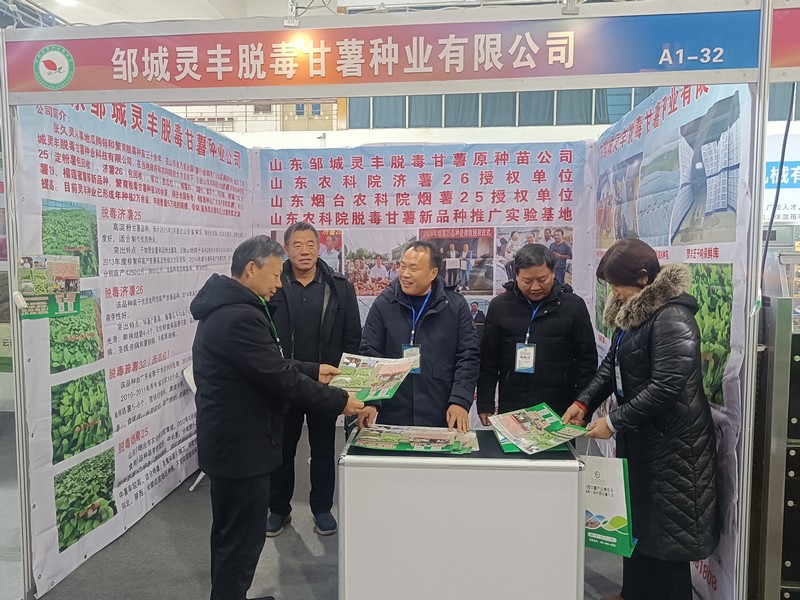 我院生物技术研究所参加了此次盛会,布置了我院展台,宣传和展示了我院选育的9个甘薯新品种。众多育苗企业、种植大户以及甘薯生产加工企业到我院展位前进行咨询,我们进行了认真介绍了我院选育的齐宁系列甘薯新品种,并发放技术资料3000余份。济宁市泗水县农业农村局、济宁金藤薯业、邹城灵丰薯业等种薯种苗企业参加了本次会议。