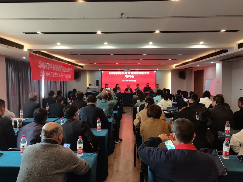 邹城市是山东省畜牧业高质量发展先行县,近年来始终坚持以标准化、规模化、产业化发展为目标,坚持用绿色发展理念引领畜牧业提质增效。为进一步助推邹城市肉牛产业健康持续发展,进一步提升邹城市肉牛产业发展水平,大力推广实用新技术,促进养殖企业降本增效,3月21日山东省牛产业技术体系济宁综合试验站邀请相关专家,在邹城市举办“肉牛高效健康养殖技术培训会”,为养殖企业传经送宝。肉牛养殖场技术人员、各乡镇兽医站及村级防疫员等,共计87人参加了培训。