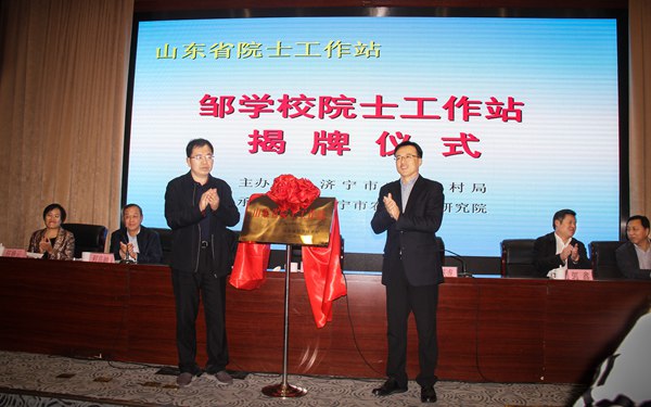 邹学校院士和任庆虎副市长共同为院士工作站揭牌